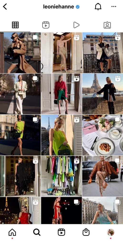 I usually scroll through Instagram at least a couple times a week and save different reels, and posts of fashion inspiration, but I also spend some time on the discover page to find new fashion or celebrities I haven’t followed yet.
