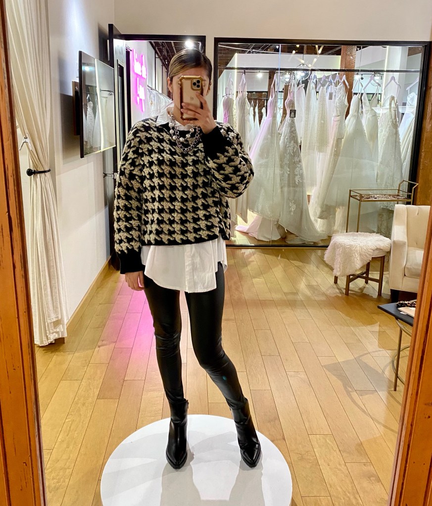 I wanted to wear my shirt dress to work, but in a different way than the standard norm so, I put a sweater over it and paired it with my leather pants and ankle boots. A preppy look for your inner fashion self.