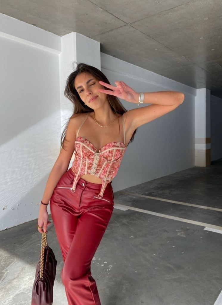 We’ve seen this cute embellished top everywhere last season and if you have it lying in your closet or have something similar, bring it out and pair it with some leather pants and heels!