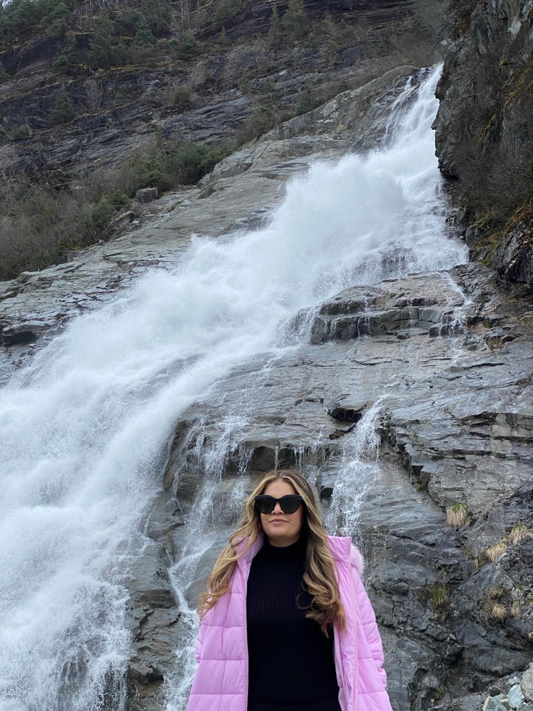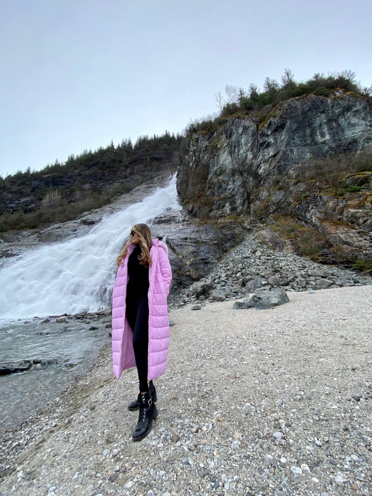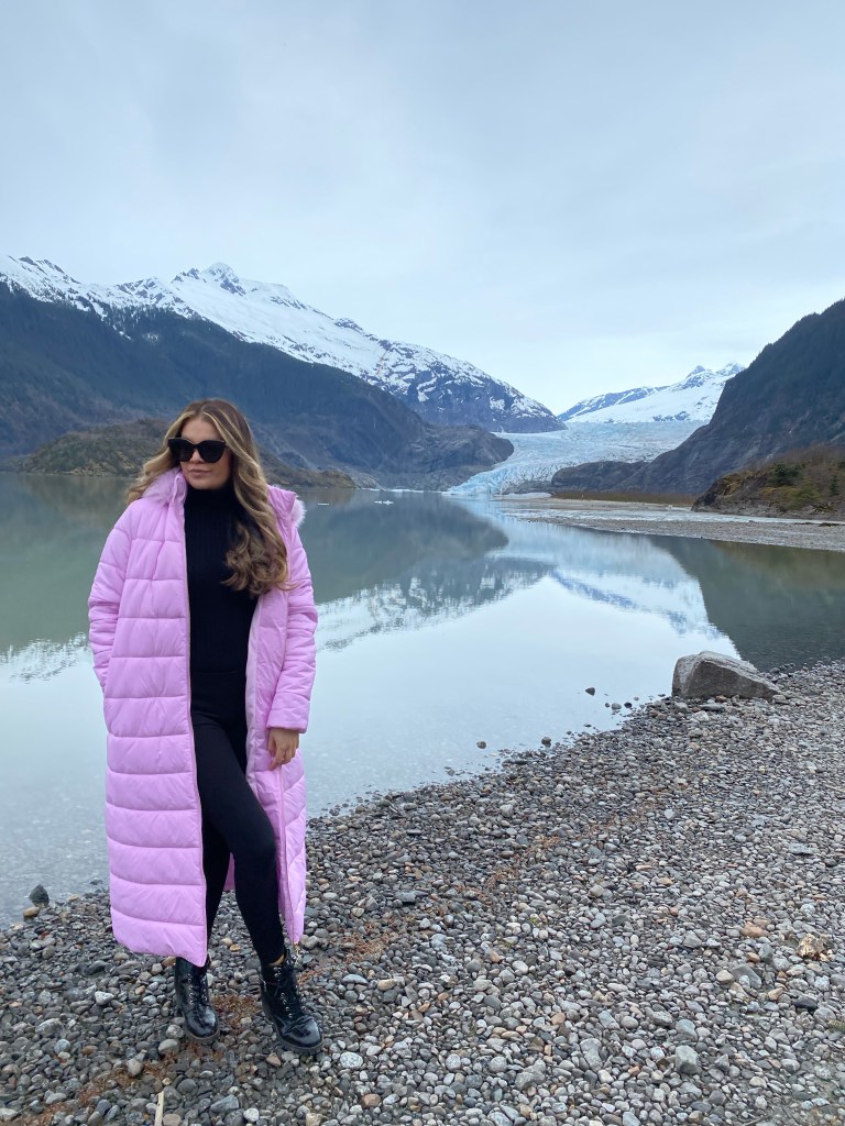 During our trip, we stopped at Mendenhall Lake, a local tourist find to visit the breathtaking glacier and waterfall. We were stopped by a local, who insisted we see the waterfall. We thought it was a long hike, and we just happened to come across the stop, so we weren’t dressed. However, we took the path she recommended, and in no time, we were there! The view was stunning and a must when visiting Juneau!