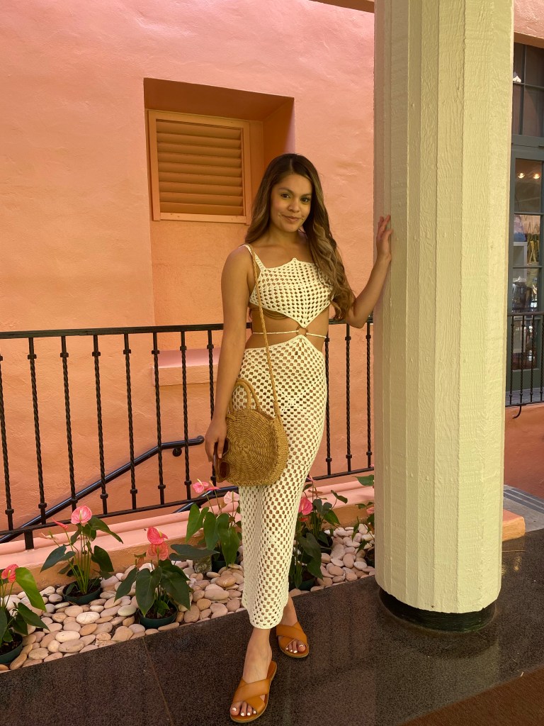 Hawaii has many golden gems, and there was one in particular I was dying to visit. I came across The Royal Hawaiian during my search, and it was gorgeous. A head-to-toe pink hotel with stunning views and amenities! Because it was close to the beach and bars, I knew I had to wear something light and interchangeable. Perfect for the beach and a night out!