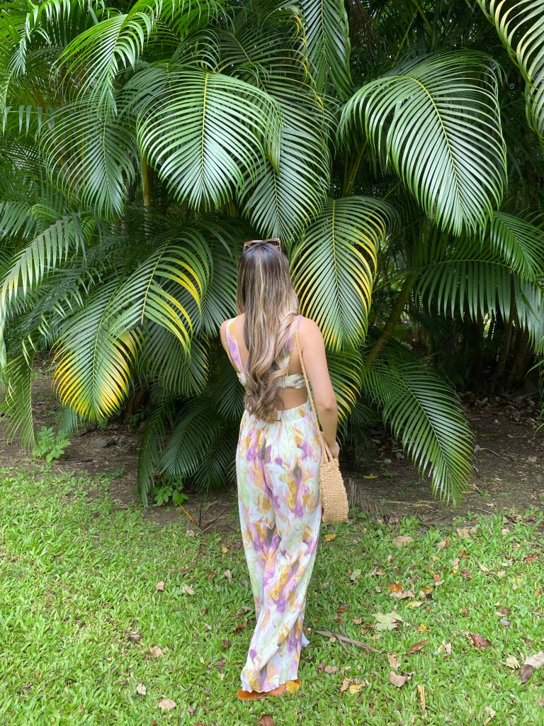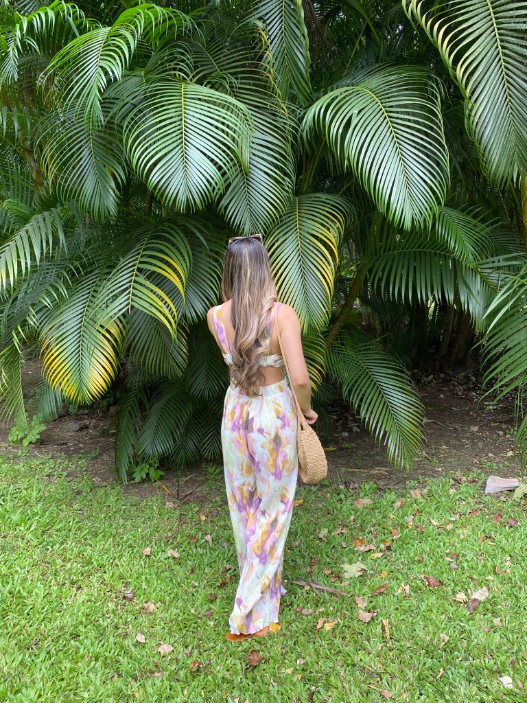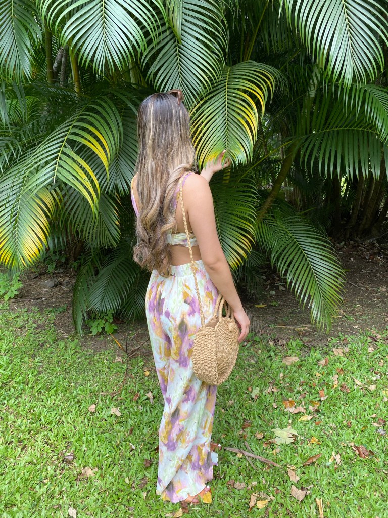 On average, Hawaii gets pretty warm weather. The humidity is much what you would expect from a tropical location’ sticky and hot. It wasn’t unbearable, but I wanted to pack some light and airy looks that screamed: “I’m on vacation.” From the North Shore to the coffee farm to the botanical gardens, this matching set was the perfect casual day look.