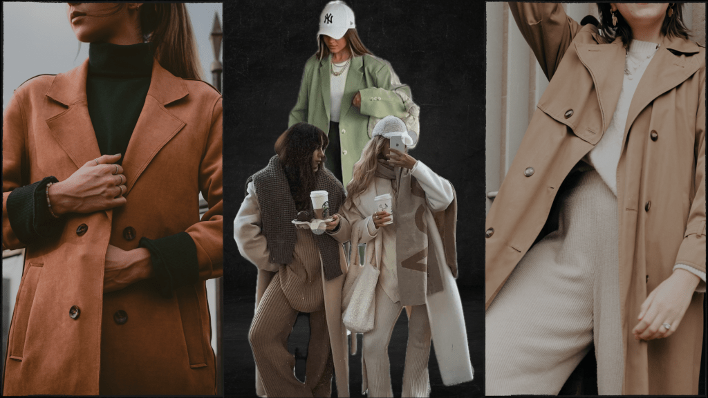 Trench coats are a classic fall/winter staple that can even be worn’ for those minimal effortless looks. Who says you can’t? All you need is some styling’ and viola: you have your masterpiece in front of you!