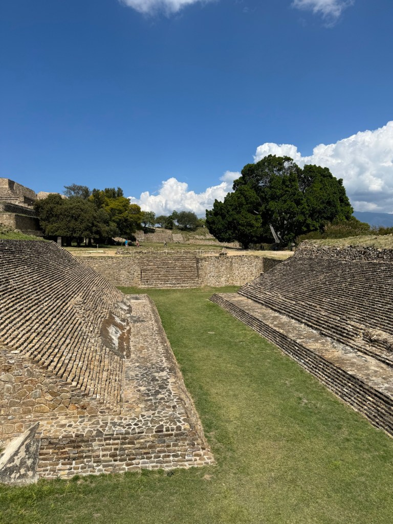 Typically, when we go on vacation, JR and I like to research ahead of time and plan some things to do, but this time, we wanted to opt for a more go-with-flow method and book things spontaneously. During one of our walks around this city, we found a tour guide and booked a tour to Monte Albán, which included a Mezcal tour, a Baro tour in Coyotepec, and a taller de Alebrijes in Arrazola. It’s safe to say with so much walking, I wanted to wear something comfortable and opted for a racer-back top with leggings. Considering the hills we walked through, I’m glad I wore something comfortable!