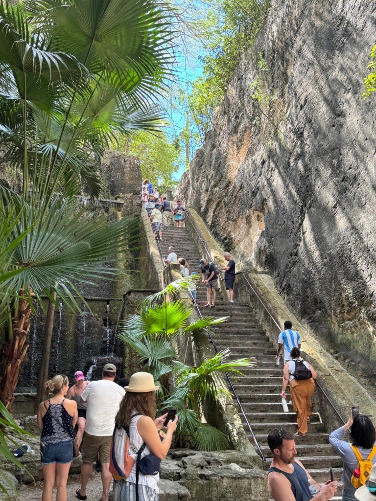 On our third day, we debarked in Nassau, Bahamas! We new ahead of time this was going to be our day of venture around the island. So, in true tourist fashion, we booked a couple of days prior an excursion, which was an ATV tour through a local guide. Considering we needed to be back on the boat at 3:30 pm, we booked a half-day excursion. Something to consider when visiting an unknown country is to be cautious of your surroundings, luckily we didn’t experience anything out of the ordinary, but always be on the lookout for the unexpected. During our tour we hit a local rum cake spot, that was nothing special but it was a local delicacy. On our next stop, we hit a memorial war museum that had an amazing view of the celebrity mansions. The coconuts were also a plus! The next stop was at a memorial site for Queen Elizabeth demolishing slavery. It was said that the staircase was built to smuggle out slaves and when the queen abolished slavery the staircase was left in her honor commemorating each step to represent how many years she reigned. After lunch, we finished off our tour with a rum tasting tour and let me tell you, the rum pina colodas were a must!! We ended our night back on the cruise with dinner and an amazing sunset out at sea!